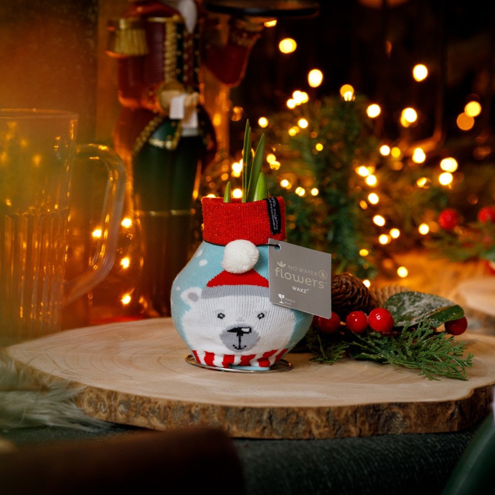De No Water Flowers® Fashionz Xmas Silly is een speels en vrolijk kerstcadeau, perfect voor wie houdt van een knipoog tijdens de feestdagen. De levende No Water Flowers® staan bekend om de unieke handgemaakte wax amaryllisbollen. Deze speciaal geselecteerde en geteste amaryllisbollen hebben genoeg energie om zonder water te groeien en te bloeien. Authentieke No Water Flowers® geven vrij korte bloemstelen, vallen niet om en bloeien gegarandeerd. Iedere No Water Flowers® wordt zorgvuldig schoongemaakt en tot in perfectie gewaxt. Dit geeft de bloembol een eigentijdse en modieuze uitstraling.