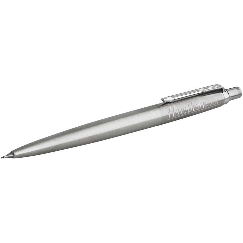 Hét Parker icoon. Jotter, de bewuste keuze van actieve schrijvers die hun pen geen moment kunnen missen. Geleverd met één potloodvulling (0,5 mm nib) in Parker geschenkverpakking. Voorzien van gum onder drukknop. Exclusief ontwerp.