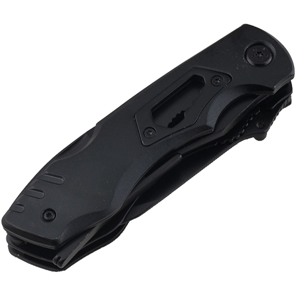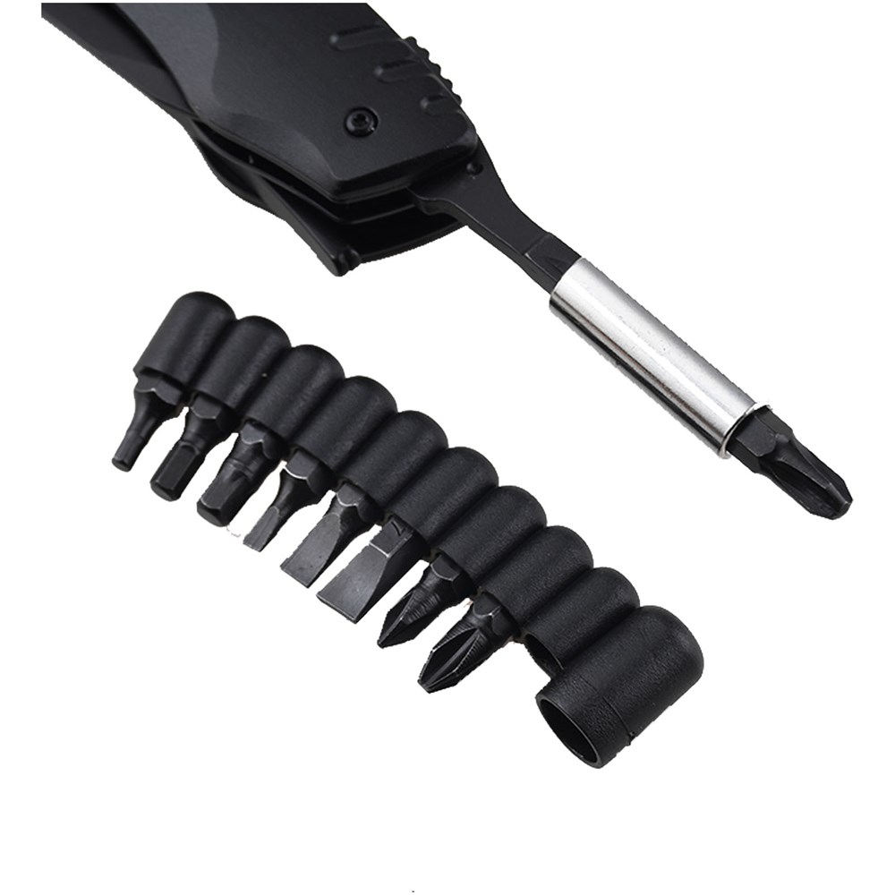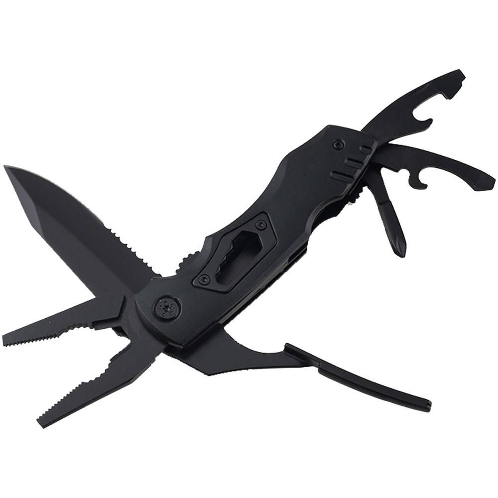 Praktisch en multifunctioneel zakmes met 10 functies: punttang, gewone tang, snijder, scherp mes, gekarteld mes, kruiskopschroevendraaier x 2, blikopener, gleufschroevendraaier en flessenopener. Het compacte formaat van dit multitoolmes maakt het perfect om in een zak te bewaren en het is ook uitgerust met een duurzame nylon huls zodat je het gemakkelijk aan een riem of rugzak kunt dragen. Alle gereedschappen zijn voorzien van een zwarte oxidecoating, die roestbestendig en duurzaam is, en het handvat is voorzien van een carboncoating. Wanneer het mes volledig geopend is, zorgt de linerlock ervoor dat het lemmet niet beweegt tijdens het gebruik. Om het mes in te klappen, druk je gewoon op de linerlock-hendel om het lemmet te ontgrendelen. Verpakt in een kartonnen geschenkverpakking (14 x 6,7 x 5 cm).