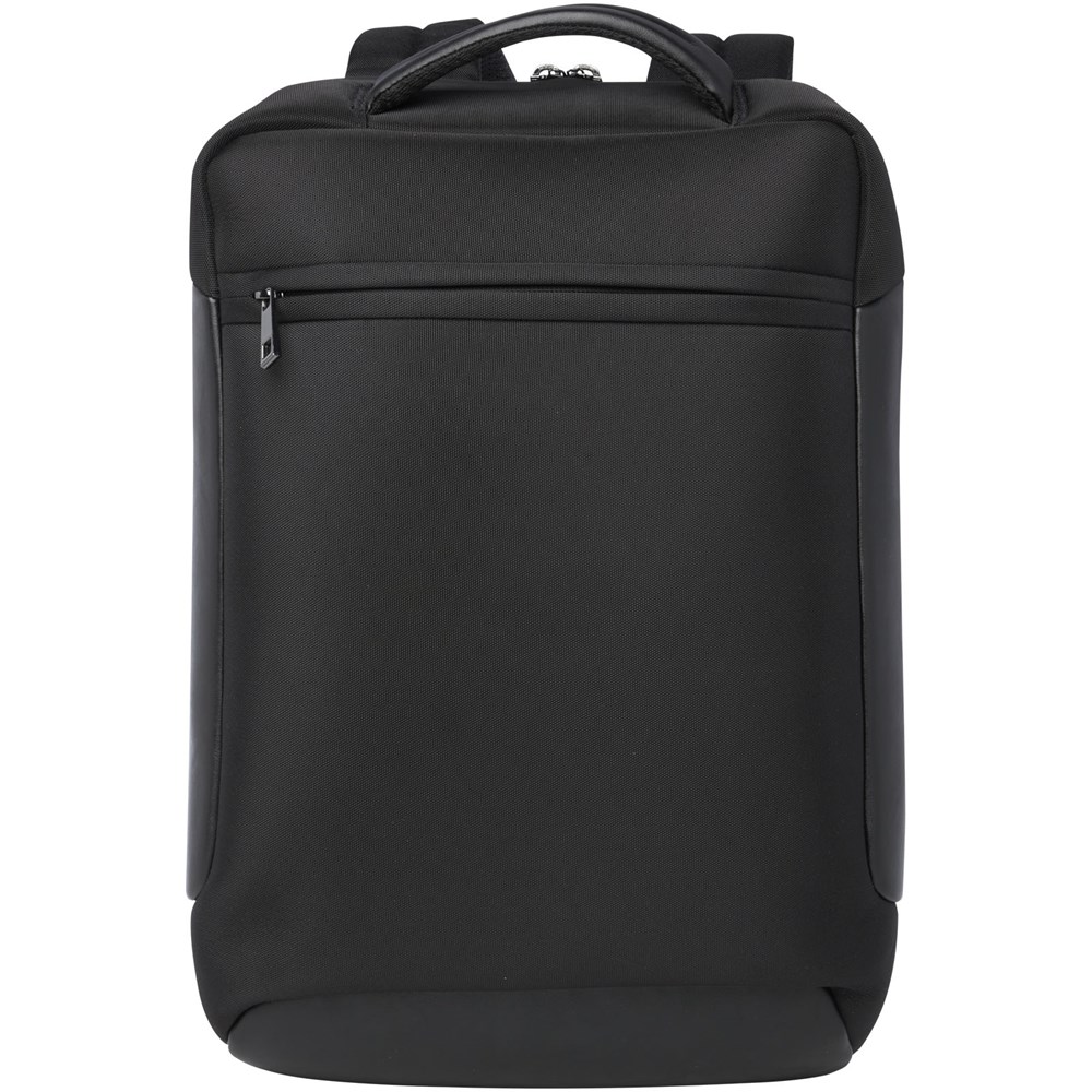 De slanke, compacte en stevige GRS-gecertificeerde Expedition Pro laptoprugzak is een perfecte metgezel voor professionals onderweg. Hij is gemaakt van waterafstotend 900D RPET, gecombineerd met premium PU-elementen en RPET-voering. De tas heeft een speciaal 15,6'' laptopcompartiment, een tablethoes, meerdere opbergvakken, een voorvak met ritssluiting en een verborgen vak direct onder de bagageband aan de achterkant. Gemaakt met gewatteerde en verstelbare schouderbanden, een geïntegreerd vak voor pasjes, een lus voor een zonnebril, een voorgevormde luchtgaas achterkant en een gewatteerde handgreep, voor maximaal draagcomfort en gemak. Inhoud: 12 liter. PVC-vrij.