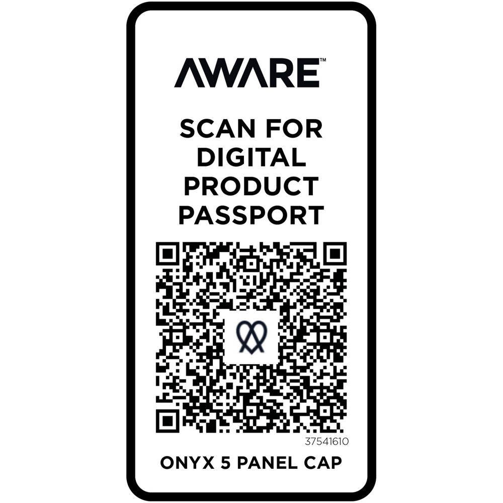 De Onyx 5 panel cap is gemaakt van 70% gerecycled katoen en 30% gerecycled polyester. Hij is ontworpen voor een comfortabele pasvorm met een hoofdomtrek van 58 cm en de metalen gespsluiting zorgt voor eenvoudige, veilige aanpassingen. De cap bevat Cyclo® gerecyclede vezels waarbij voorgesorteerd afval wordt gebruikt dat de kleur van het garen bepaalt. Deze vezels verminderen niet alleen de vraag naar nieuwe grondstoffen, maar tonen ook een engagement voor een circulair leven, waarbij ze de essentie belichamen van het verminderen van afval en het bevorderen van een gesloten kringloopsysteem. Elke cap wordt ook geleverd met een Aware™ tracer. Met deze innovatieve functie kunnen gebruikers de oorsprong en de reis van hun artikel volgen via een QR-code, waardoor de transparantie in de toeleveringsketen wordt vergroot en er een sterkere band is tussen het product en het productieproces.
