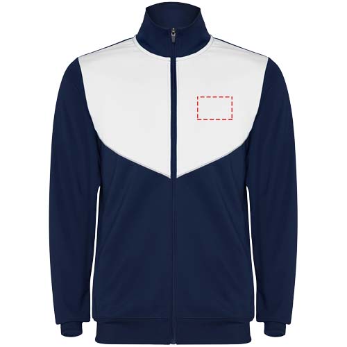 Trainingspak van lichtgewicht en elastische stof. Jack met contrasterende kleur en naaiversieringen op de borst. Hoge kraag met contrasterende naden. Centrale rits aan de voorkant. Zijzakken. 2x2 geribde manchetten en taille. Broek met elastische tailleband en trekkoord. Contrasterend zijstuk met naaiboorden. Zoom met rits.