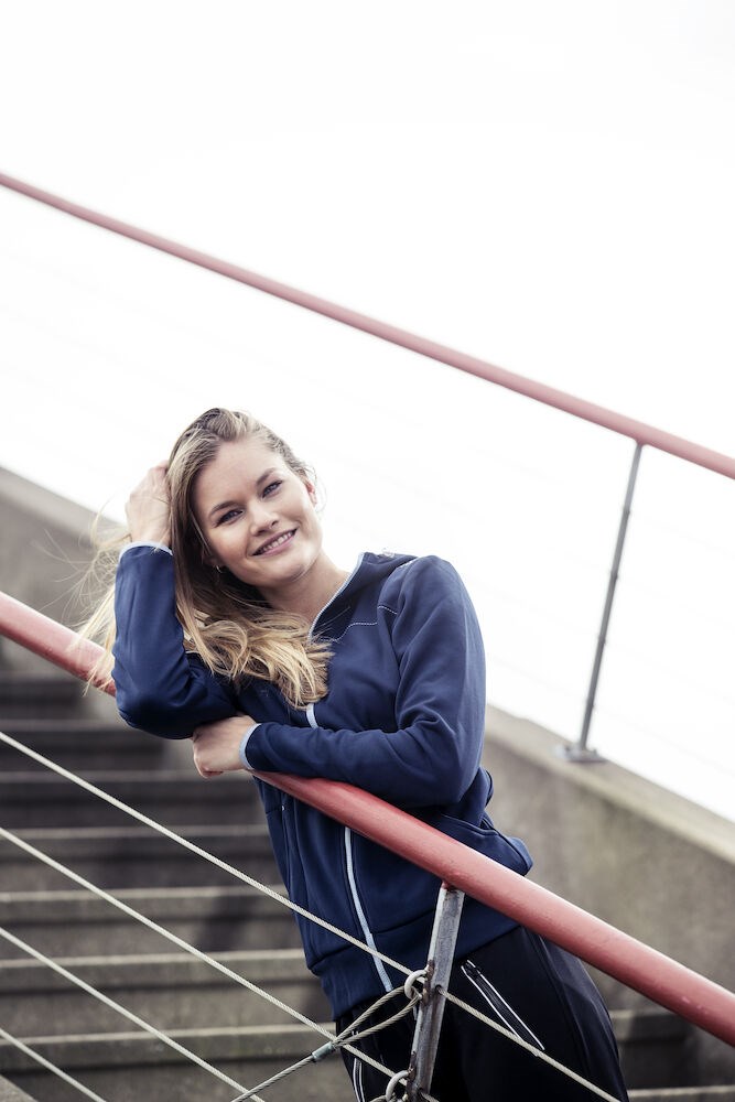 Comfortable hood jacket made of soft, elastic and functional polyester. Features hood with drawcord and two pockets.