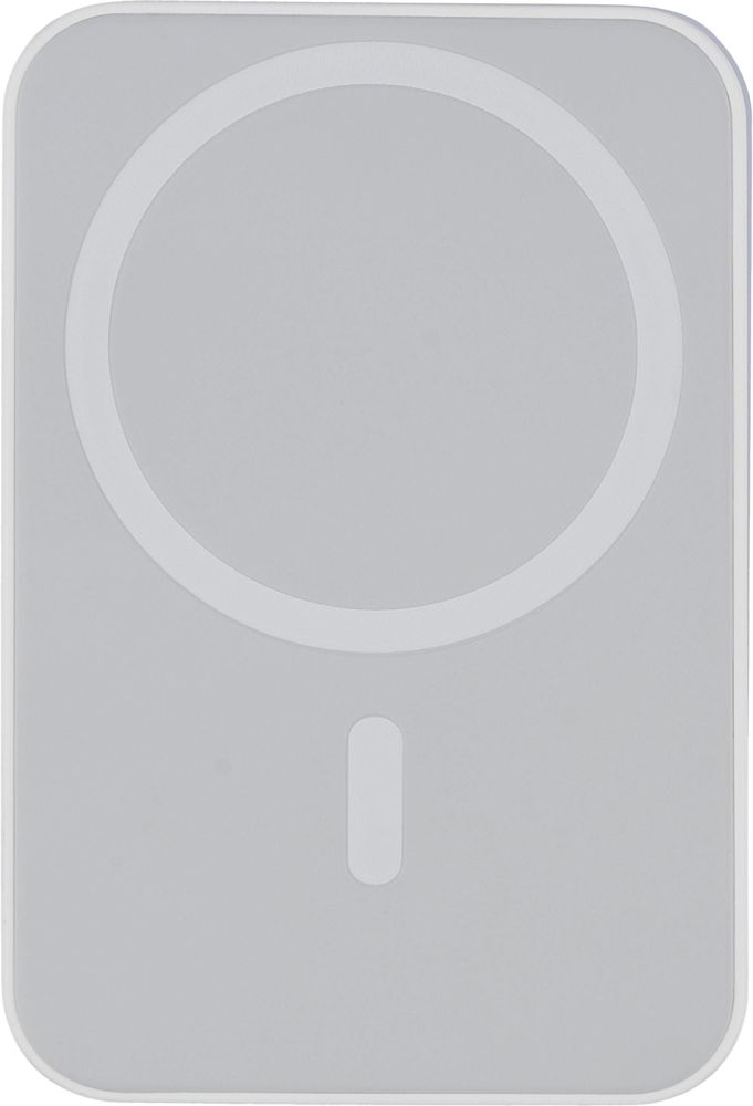Gerecyclede ABS draadloze oplader-powerbank met 5.000?mAh Li-ion batterij en 15W magnetische draadloze oplaadoutput (compatibel met MagSafe). Type-C ingang tot 20W en Type-C uitgang: DC5V/3A, DC9V/2,22A, DC12V/1,67A. Voorzien van bescherming tegen oververhitting, kortsluiting, overspanning en overstroom. Stopt automatisch bij oververhitting. Inclusief extra metalen ring met zelfklevende achterkant voor draadloos opladen van niet-MagSafe apparaten. Voorzien van label met gerecycleerd ABS (RABS)-logo aan de zijkant. Individueel verpakt in een bruine kartonnen doos met zijdepapier.