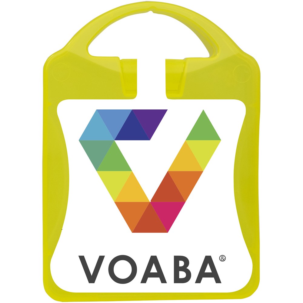 Ideale kit voor kinderen. Deze kit zorgt ervoor dat je kinderen veiliger en beter zichtbaar zijn op de weg. Inhoud: 1 veiligheidsvest, 2 slap wraps en 2 reflecterende sleutelhangers. Alle eerstehulp- en verzorgingsproducten in de kit voldoen aan alle geldende EU-voorschriften. Prijs is inclusief full colour bedrukking.