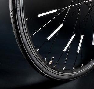 Set van 10 reflecterende strips voor fietsspaken, verpakt in blisterverpakking. Voor promotioneel gebruik.