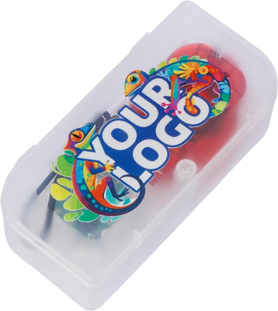 2-Delige fietslampenset bestaande uit 2 mini LED lampjes, rood en wit (2 lichtstanden: constant brandend en knipperlicht), incl. batterijen. Verpakt in frosted kunststof cassette.