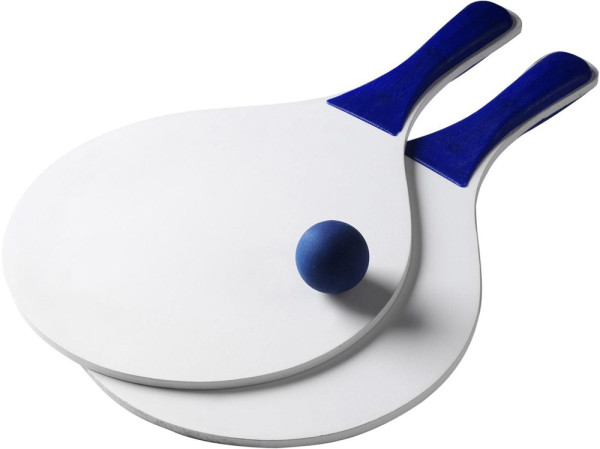 Strand tennisset bestaande uit 2 rackets met 1 balletje, verpakt in een hersluitbare gaashoes.